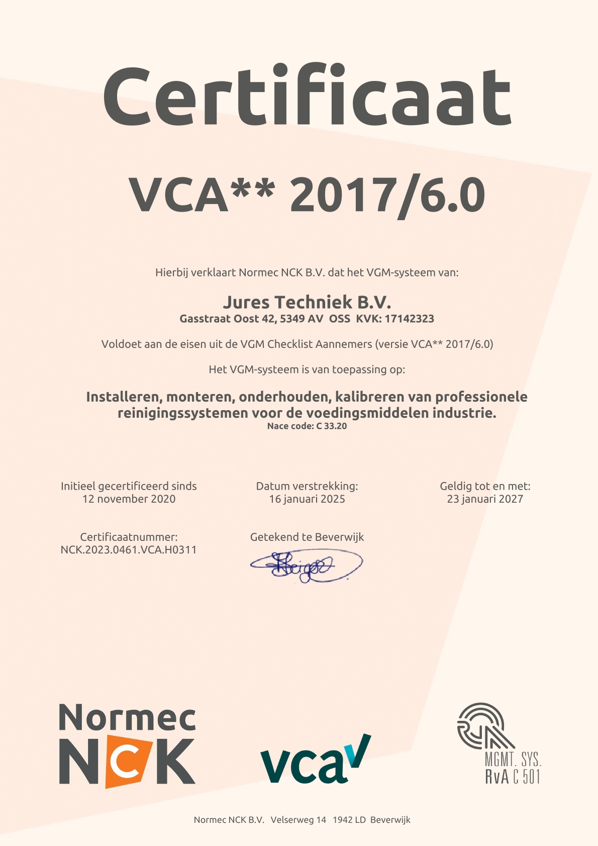 Door continue o.a. hard bezig te zijn op het gebied van veiligheid gezondheid en milieu zijn we dit jaar weer beloond met het VCA** certificaat.